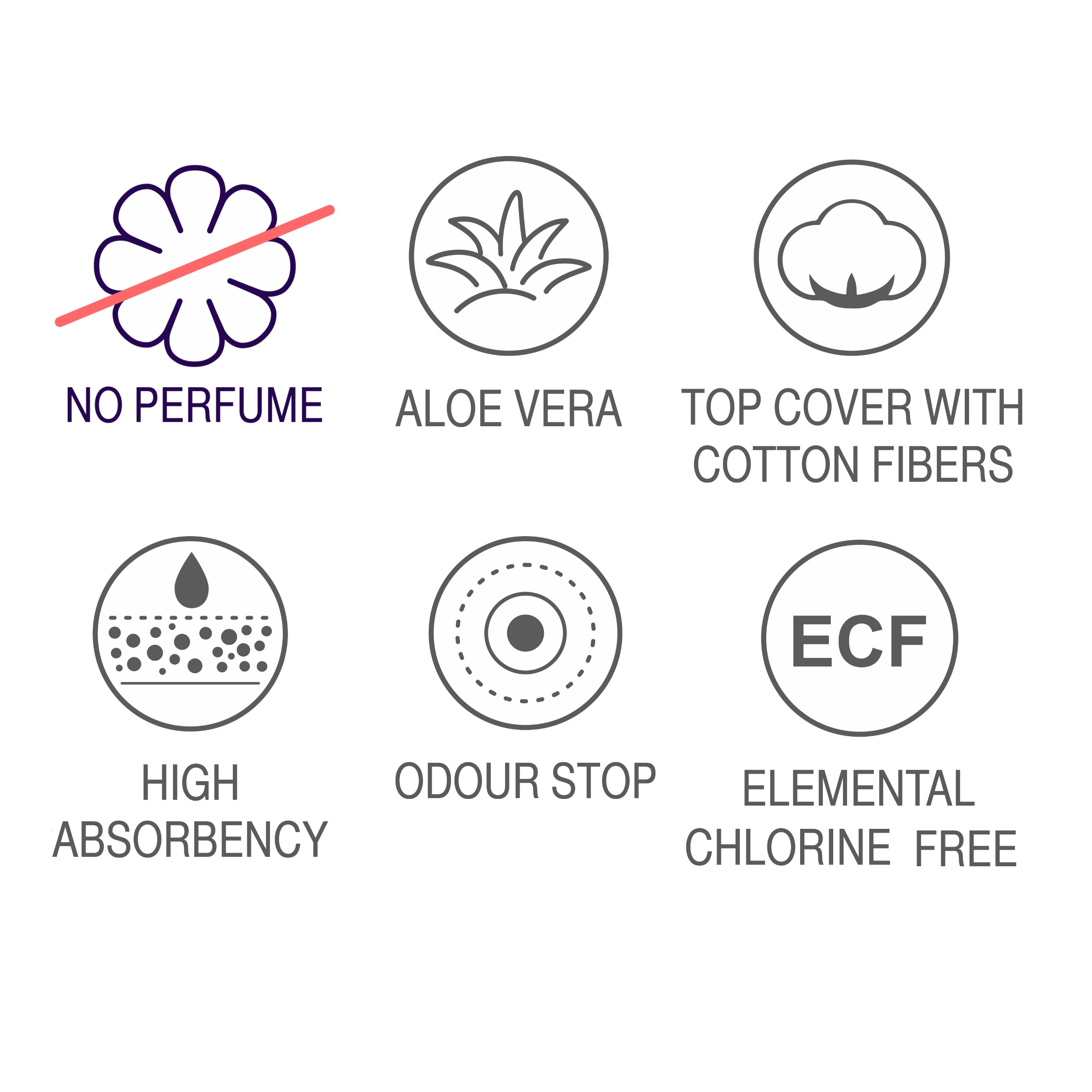 Nedvszívó és szagsemlegesítő tulajdonságairól ismert szuperabszorbens polimer összetevővel.
