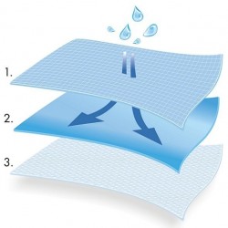 Az anyag nagyon nagy szakítószilárdságú. Védelmet nyújt a mikroorganizmusok és folyadékok behatolása ellen. Magas abszorpciót mutat a viszkóz nem szőtt nedvszívó rétegnek köszönhetően. A nem szőtt felső réteg védi a beteget a műtét közbeni lehűléstől.