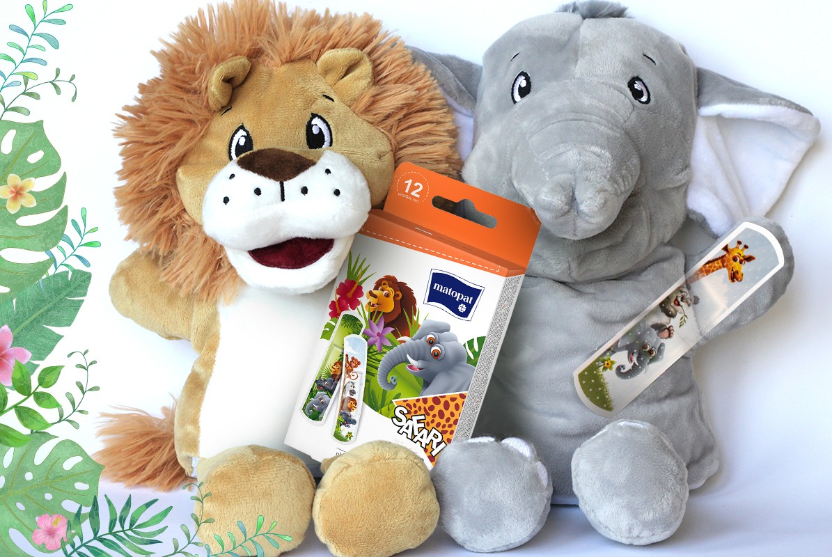 Matopat SAFARI sebtapasz a mikroperforált fólia hátlapon színes állatmotívumokkal. Kisebb sebek, vágások, karcolások és horzsolások védelmére szolgál. Tökéletesen tapad a bőrhöz, megvédve a sebet a környezeti szennyeződésektől.