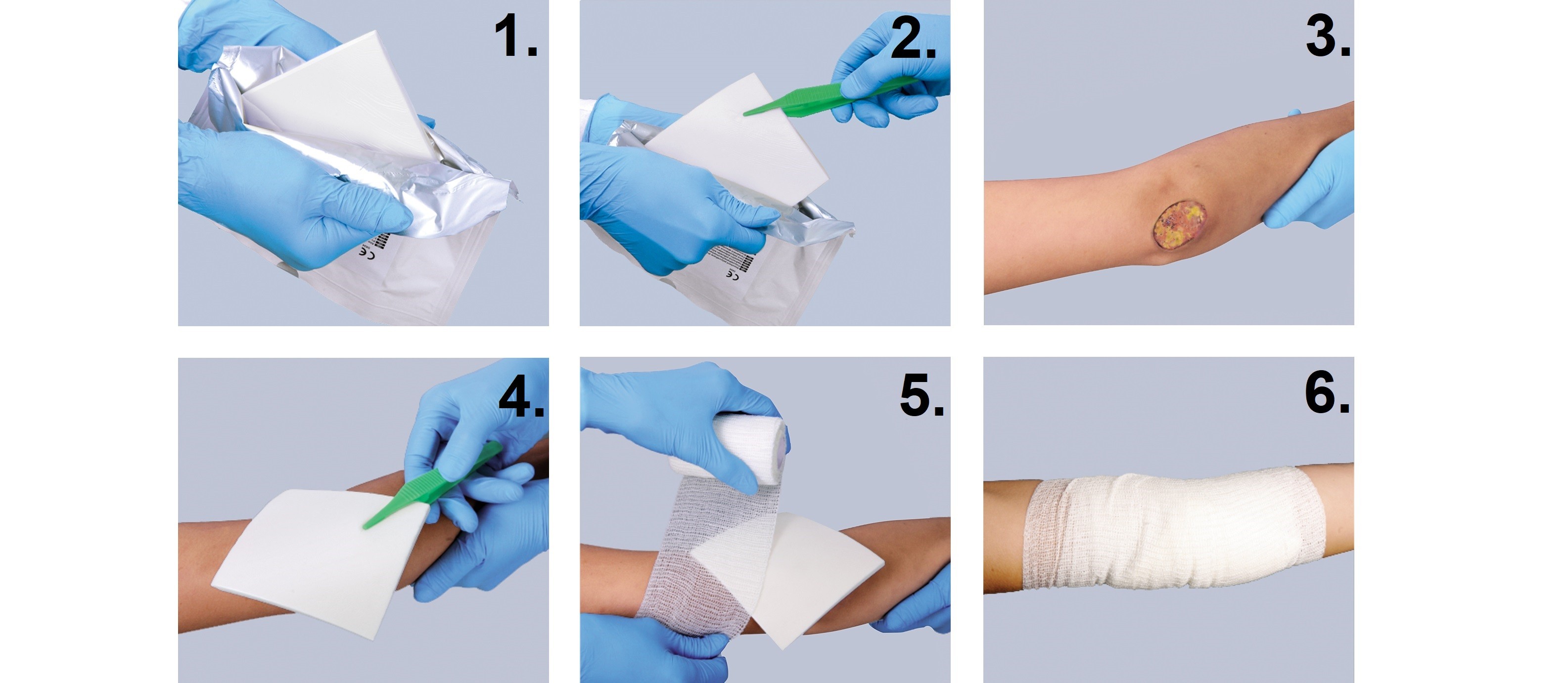 A kötszer különösen alkalmas minden típusú seb gyors eltávolítására a nekrotikus szövetektől és a gennyes váladéktól.